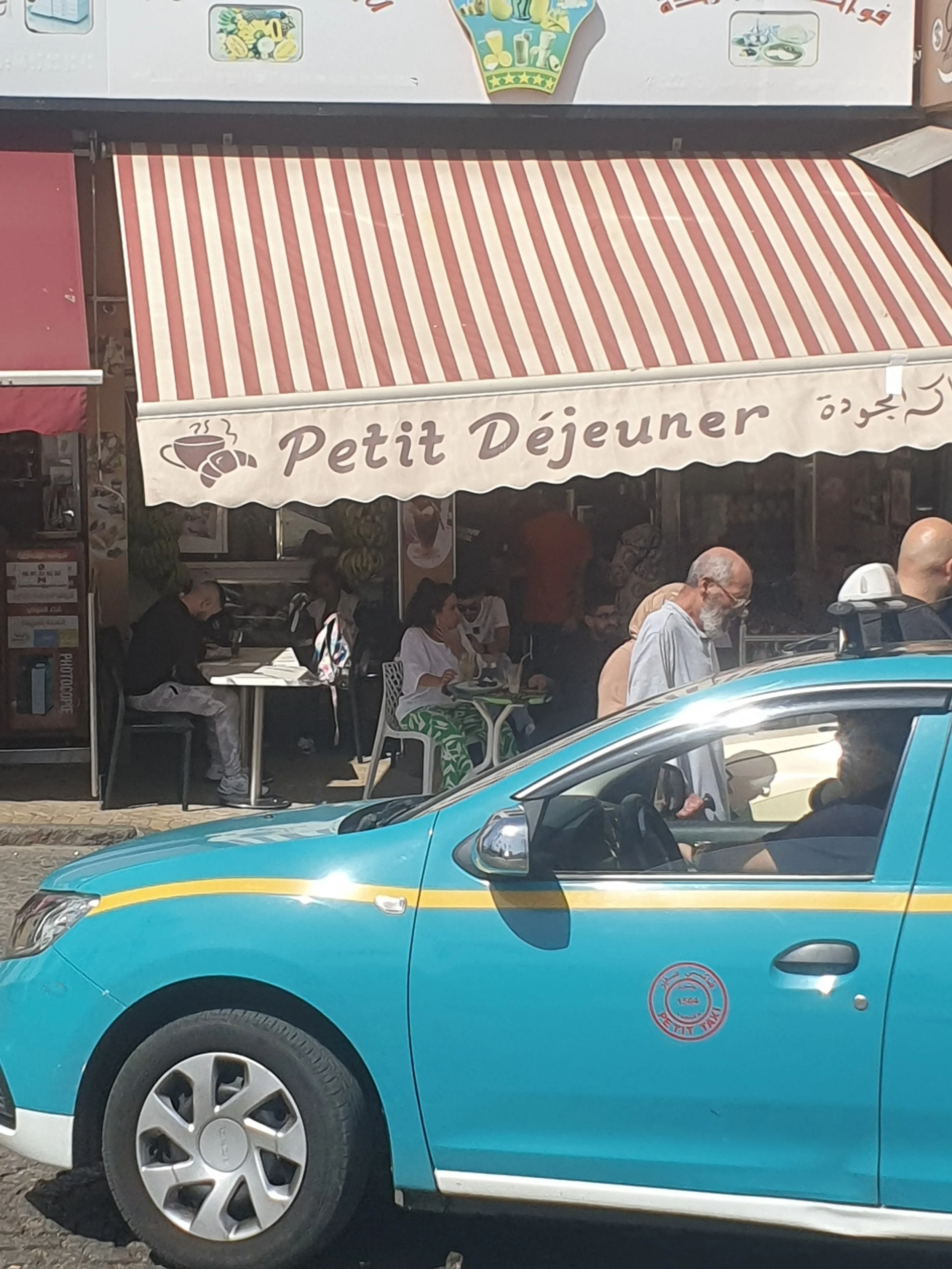 Each city has a different taxi system with different owners. In Tangier, the blue taxisare share taxis and very cheap for short distances (Getting Around in Tangier - Transport) . You say where you want to go, and the driver will accept you if it fits with his other passengers.