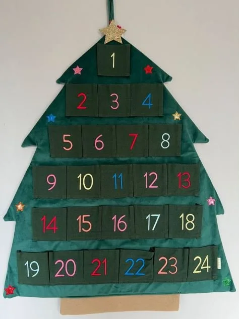 Something like the one I made, but mine was pretty - flat red heart shaped pockets of red Christmas material on green Christmas material squares, with the numbers arranged randomly.