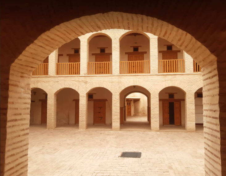 A foundouk, showing the courtyard where the camels rested. The doors on the balcony and downstairs were rooms.