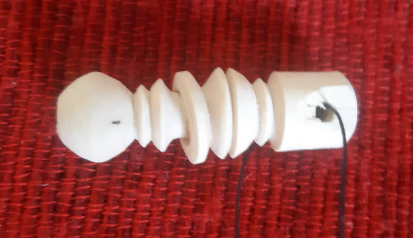 4-5cm long, a free spinning ring in the middle, he did this in about 60 seconds, using his toes as easily as his fingers.