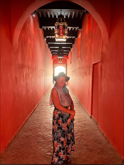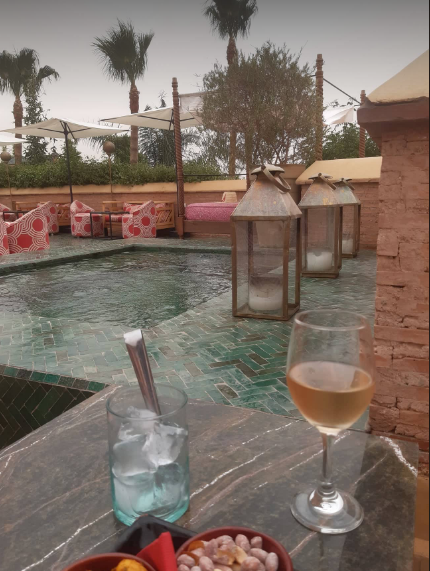 I make my way to an expensive hotel just outside the medina – El Fenn – elegant and beautiful. On the rooftop I order a chilled rosé, slip off my dress and slide into the small pool.