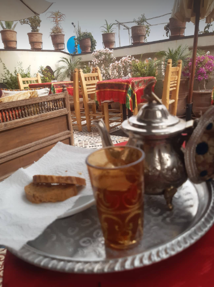 Tea on the rooftop of Dar Ben Youssef hostel - a part of the welcome everywhere.
