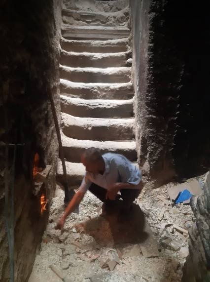 As I nod in understanding the old man invites me down to look. I negotiate the steps which feel precarious, taking me down into a deadend. My mind slips to documentaries on Jack-the-Ripper and serial killers – I’ve seen far too many!