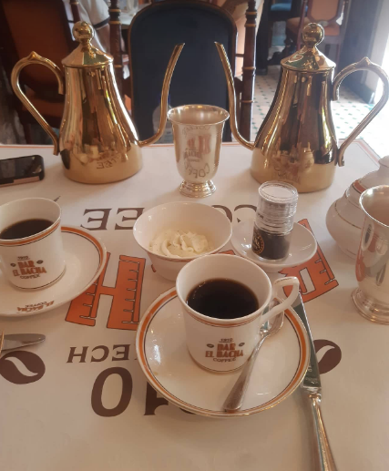 El Bacha coffee, ready for the cream, sugar and shavings of chocolate.