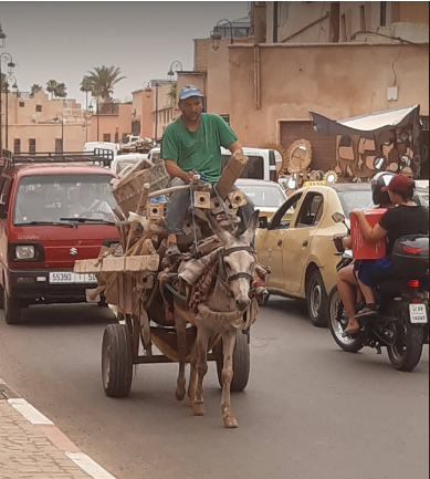 Marrakech transport - donkey and cart. It did not look as if the wealth flowing into the medina from tourists also flowed outside the medina to the rest of Marrakech.
