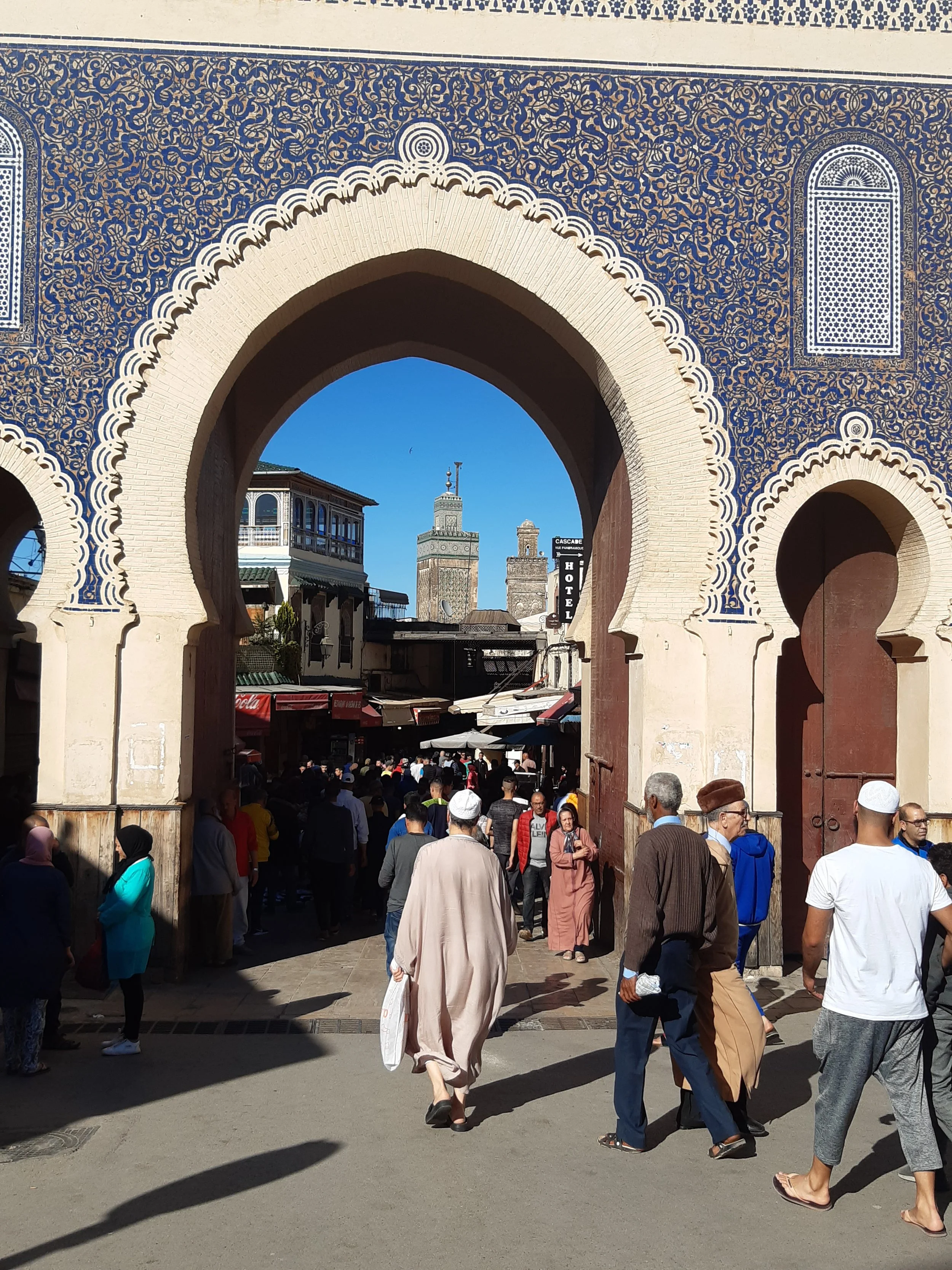 Fes is an endless maze of medina alleyways. It extends far enough as a tourist just wandering around the souvenir shops – especially for earrings – but the Fes medina is the biggest medina in the world. Medina just means city centre, but in conversation it is usually used to specifically refer to the old walled city, and is a typical feature of cities on both sides of the Mediterranean, and in the Middle East.