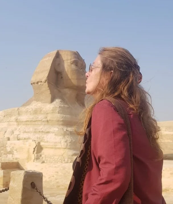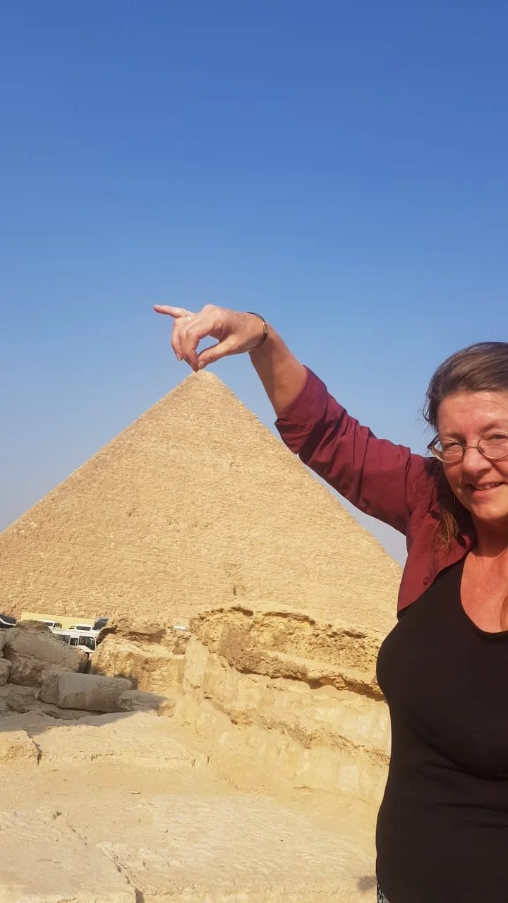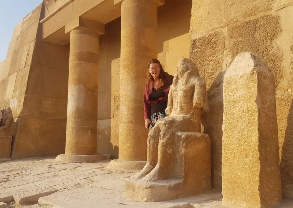 The river Nile used to come right up to this part of the desert several thousand years ago. The Sphinx was the first stop. It smiles at us, a Mona Lisa smile above its missing nose thanks to Napoleon’s pot shots in the 1700s. I think it smiles like that because it still has secrets. They have found hidden rooms in and under the Sphinx. They don’t yet know – or at least, haven’t yet shared with us exactly what they are.