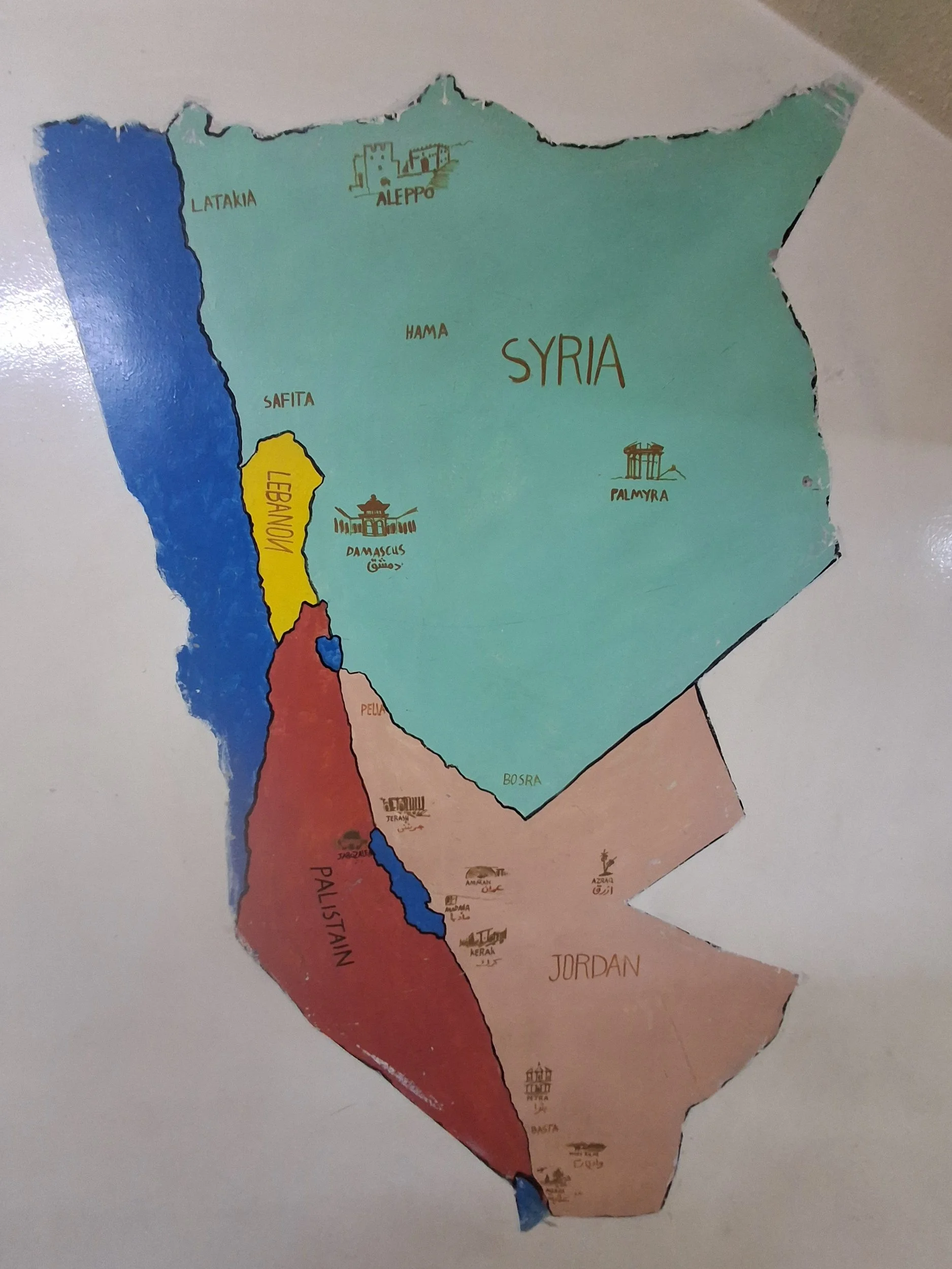 This is a map from the hostel wall showing how these countries fit together, bonded by the Bedouin tribes. Aqaba in the south is a 4-5 hour bus ride to Amman.