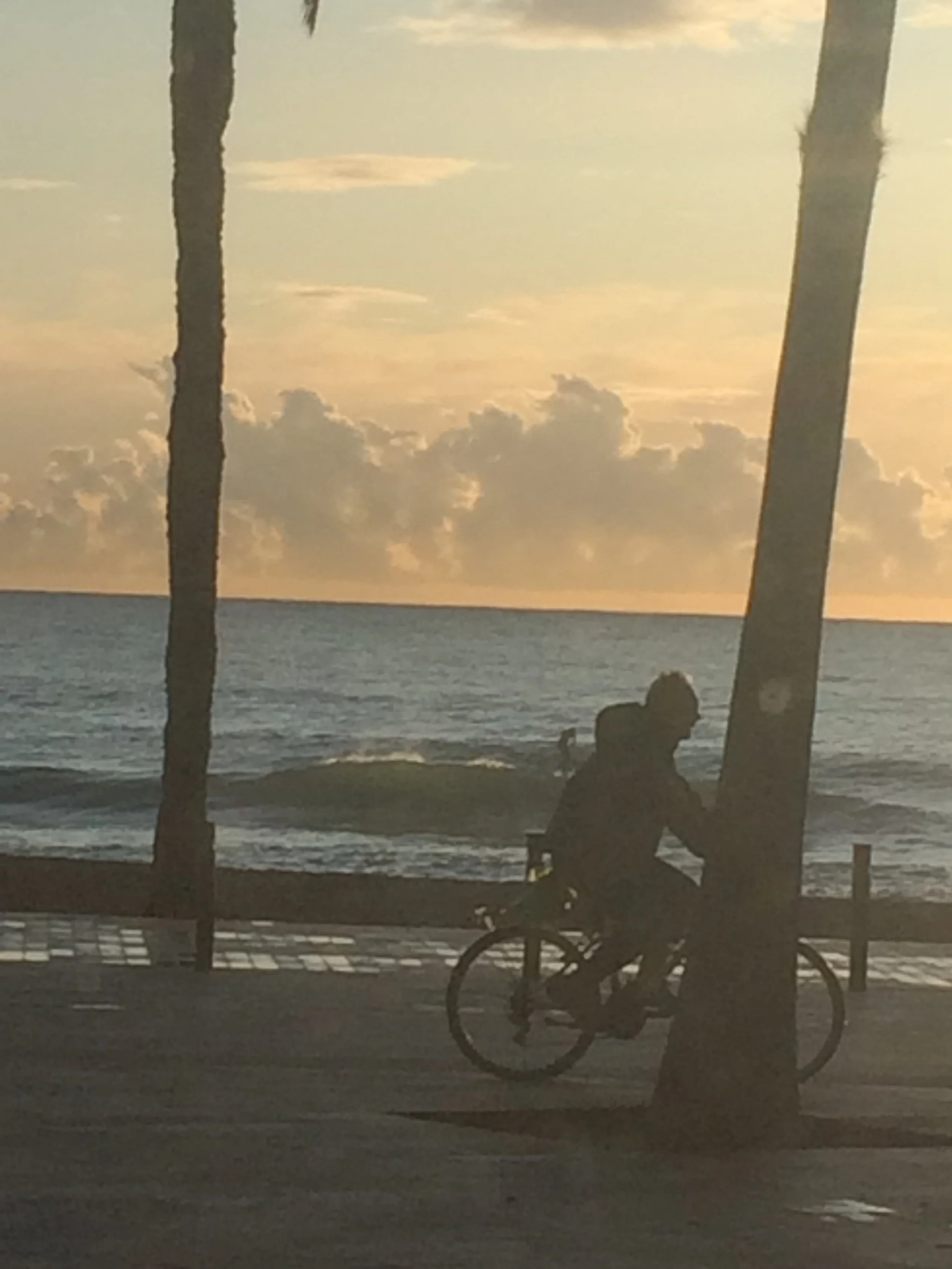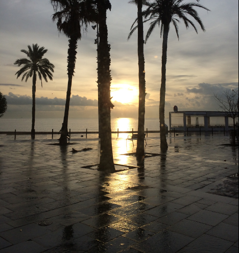 I am sitting in a café on the beachfront in Barcelona. The Mediterranean is gently lapping at the sand. A young woman cycles past, her silhouette reflecting off the shiny surface of the wet pavers that cover the square between myself and the beach – it has rained in the hour before sunrise and everything smells fresh, if a little chilly. The sun is just rising above the sea, perfectly lined up between two palm trees.
